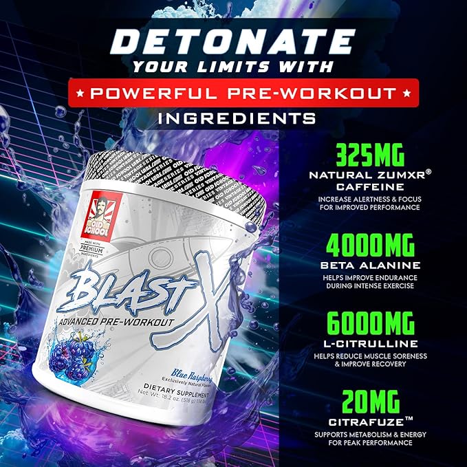 Blast X Advanced Pre Workout Powder, Intense Energy Booster Preworkout for Men & Women, Natural Caffeine + ZumXR®, Beta Alanine, Citrafuze™, L-Citrulline & Taurine for Strength, Focus & Endurance