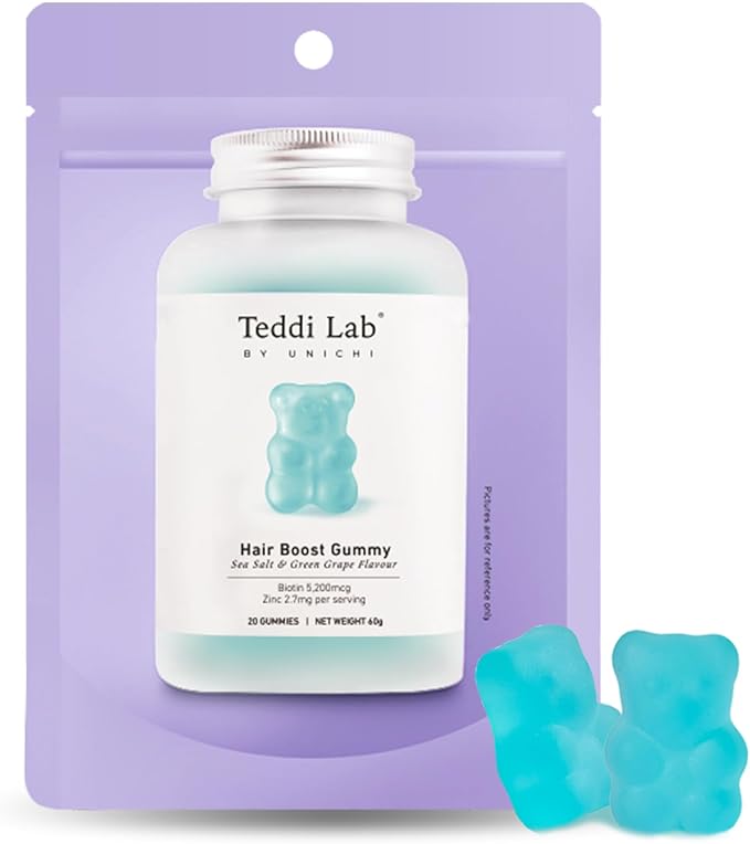 Unichi Hair Boost Gummy 20 Count, 5200mcg Biotin Formulated with Zinc, Pantothenic Acid and Vitamin A C E for Stronger and Thicker Hair, Great Tasting with Sea Salt & Green Grape Flavour