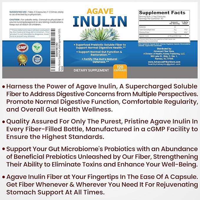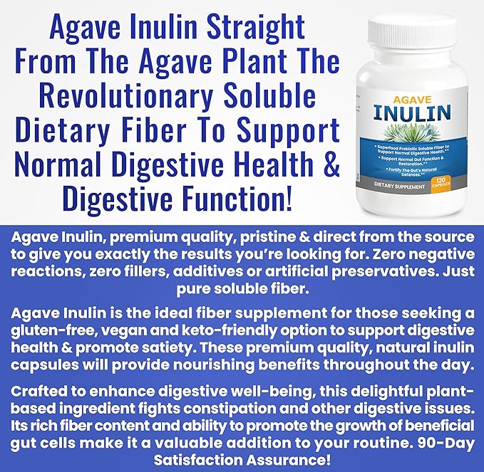 - Easy to Incorporate: Introducing this agave inulin into your daily regimen couldn't be simpler. Take 1-3 inulin capsules a day and you’ll see how it supports normal, comfortable digestive function, balanced movements and much more! Agave inulin in a capsule makes it a convenient way to incorporate extra fiber in your diet wherever you are.