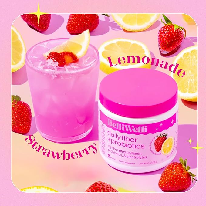 Daily Fiber Supplement Powder with Collagen, Probiotics & Electrolytes | Supports Digestive Health, Gut Balance & Debloating | Strawberry Lemonade | 16 Servings