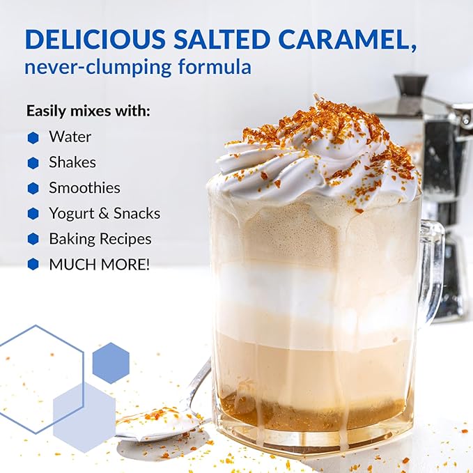 - DELICIOUS SALTED CARAMEL. Our healthy low-carb protein powder is non-GMO, with no hormones, artificial sweeteners or colors; combine with a healthy diet and regular exercise for best results.