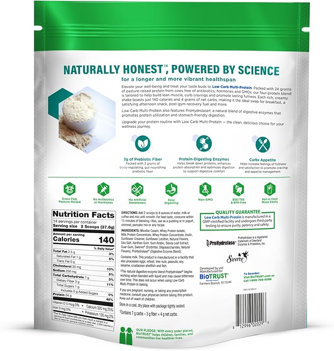 BioTrust Low Carb Protein Powder - Healthy Isolated Whey Protein Powder and Casein Blend from Grass-Fed, Pasture-Raised Cattle, Plus Digestive Enzymes - Salted Caramel, 14 Servings