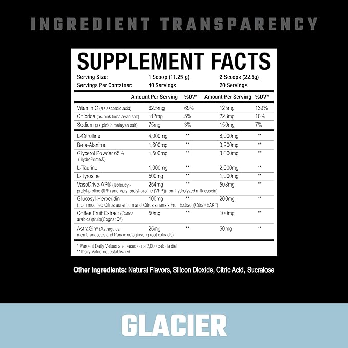 Axe & Sledge Supplements Hydraulic Stimulant-Free Pump Pre-Workout Powder, 40 Servings, (Pack of 1) (Glacier)