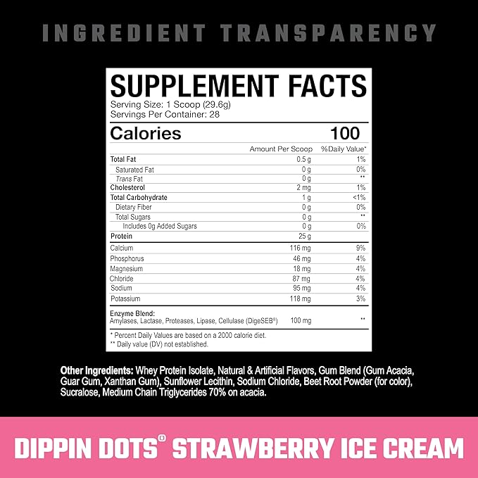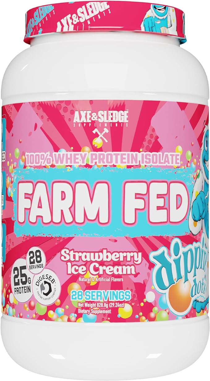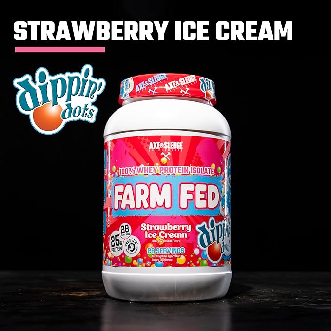 Axe & Sledge Supplements Farm Fed Grass-Fed Whey Protein Isolate, Digestive Enzymes (Dippin Dots Strawberry Ice Cream V2)