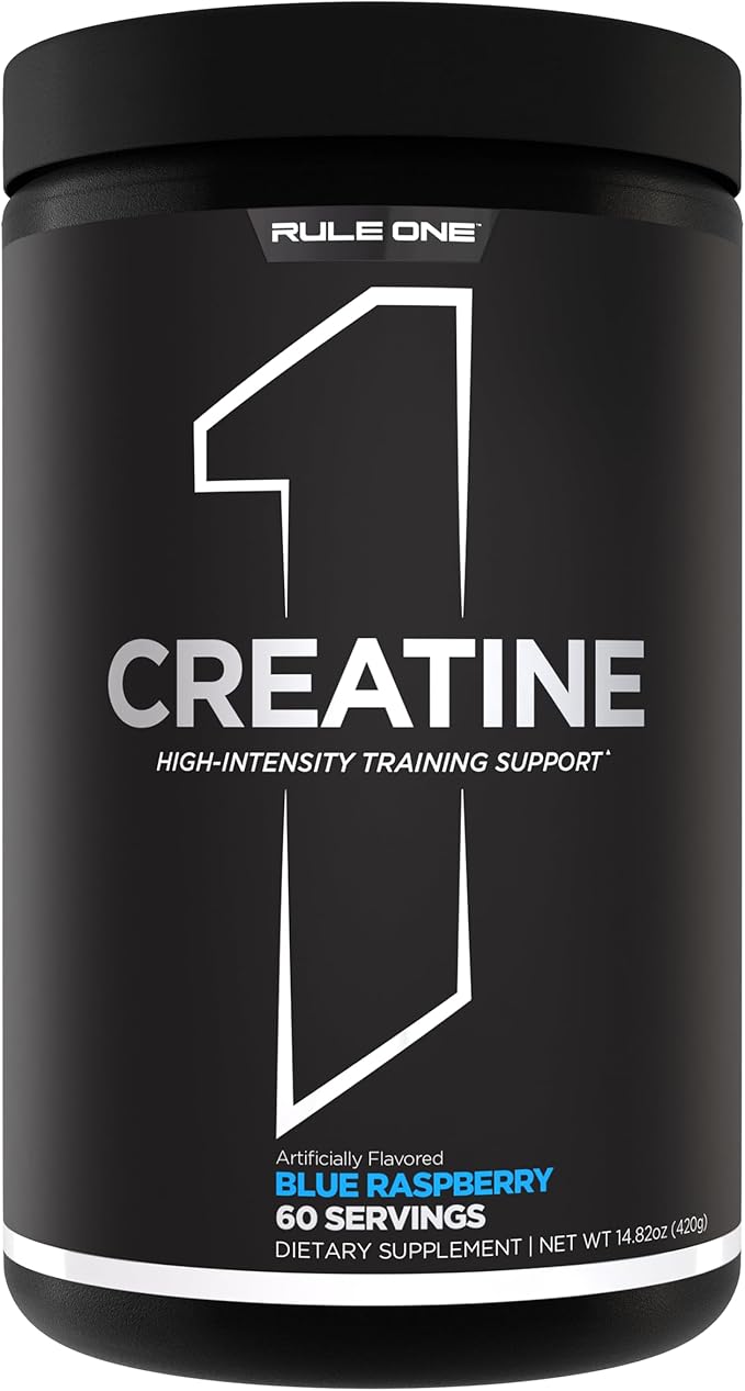 Rule 1 Creatine Powder – Pure Micronized Creatine Monohydrate for High-Intensity Exercise and Lean Body Mass Support, Flavored and Unflavored (60 Servings, Blue Rasperry)