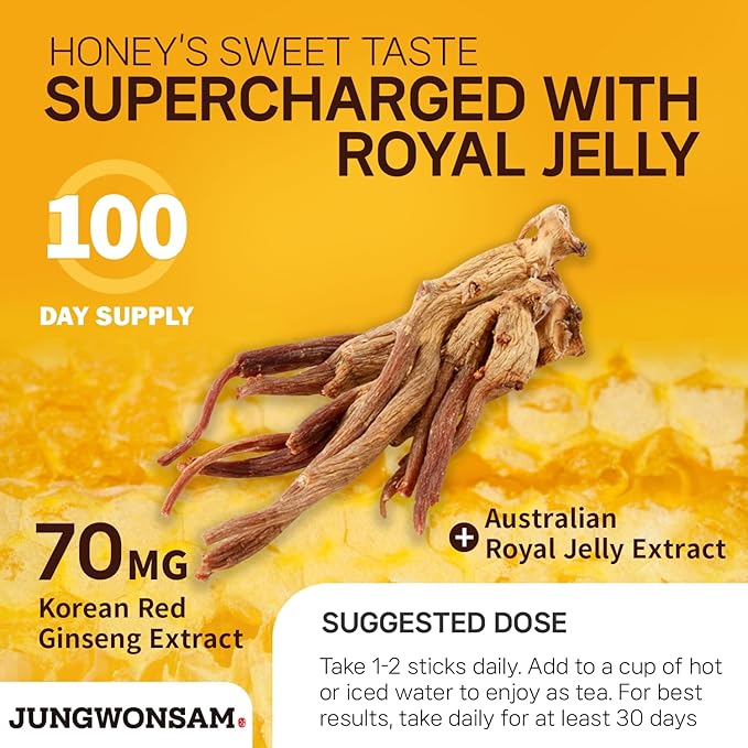 - š 1-2 Sticks a Day: Each stick contains the recommended dose of 70mg of Korean Ginseng Extract. Individually packaged for easy consumption, these portable sticks make it convenient to meet your daily intake anytime, anywhere.