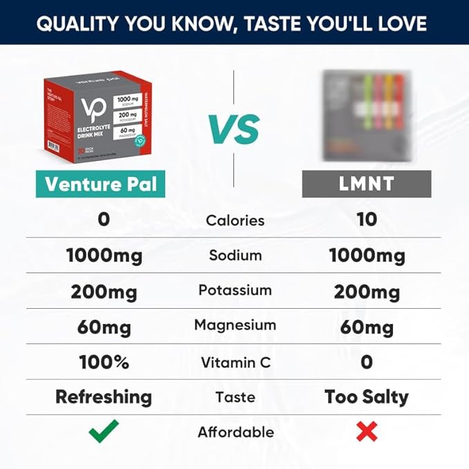 - OPTIMIZED FORMULA DESIGNED FOR YOU: Venture Pal Electrolyte Powder Packets offer a zero-calorie, sugar-free solution packed with essential electrolytes like sodium, potassium, and magnesium to keep you hydrated and performing at your best during workouts or daily activities