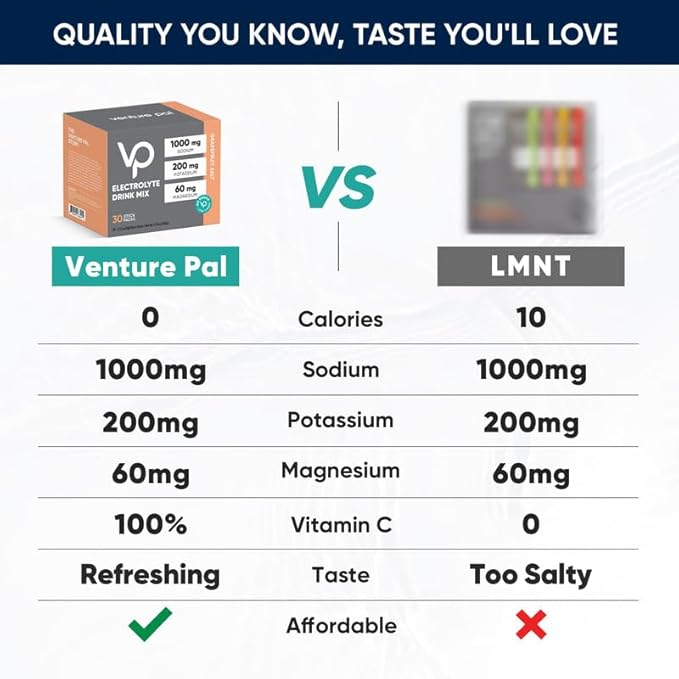- OPTIMIZED FORMULA DESIGNED FOR YOU: Venture Pal Electrolyte Powder Packets offer a zero-calorie, sugar-free solution packed with essential electrolytes like sodium, potassium, and magnesium to keep you hydrated and performing at your best during workouts or daily activities