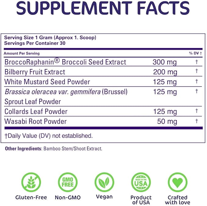 - Natural Detox: Bio-Clear combines powerful and natural detox substances with super concentrated antioxidants. Our formula is packed with ingredients that contain the essential elements (glucoraphanin) and enzymes (myrosinase) that stimulate nature’s most potent detoxification substance ever identified, sulforaphane.