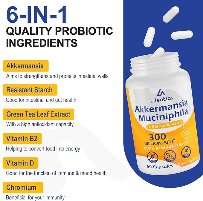 - Get Healthier with Lifeatlas Akkermansia: Akkermansia is a beneficial bacteria naturally found in the gut, not everyone has it, and it can only thrive in an oxygen-free environment, and it is low or completely lacking in people experiencing metabolic disease. You can take Lifeatlas 300 Billion AFUs Akkermansia daily to get this essential gut bacteria to keep gut health and get more GLP-1
