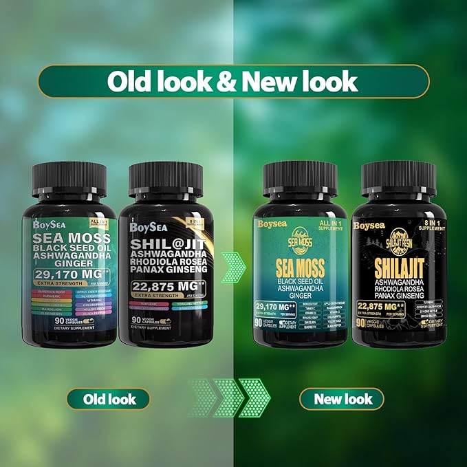- ★CONVENIENT WELLNESS SOLUTION: Say goodbye to multiple bottles and hello to convenience. Boysea's Shilajit and Sea Moss, Each in his own bottle, provide a comprehensive 8-in-1 and all-in-1 supplement, providing you with an easy-to-carry and consume solution. Enjoy the simplicity of a two-bottle set without compromising efficacy.