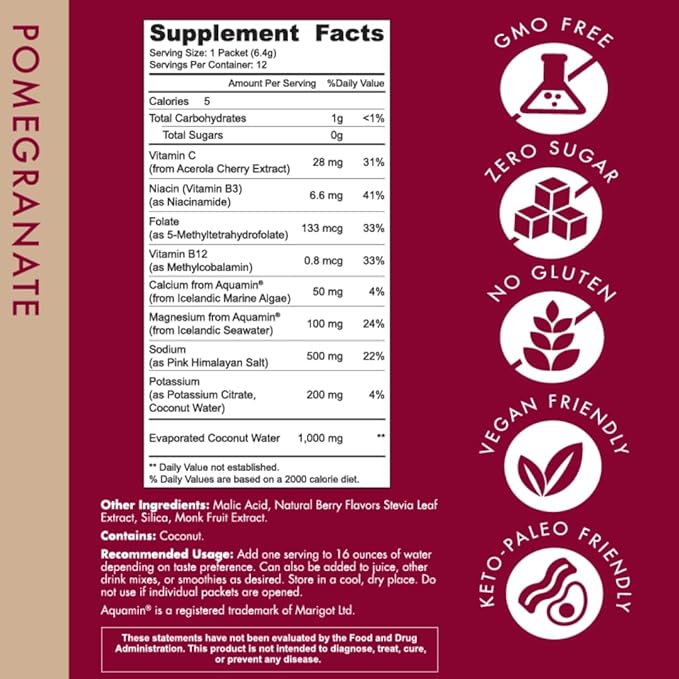 Holistix Electrolyte Powder: Zero Sugar Hydration | Enhanced with Icelandic Marine Algae | Natural Flavors | Keto & Paleo Friendly | 12 Stick Packs (Pomegranate)