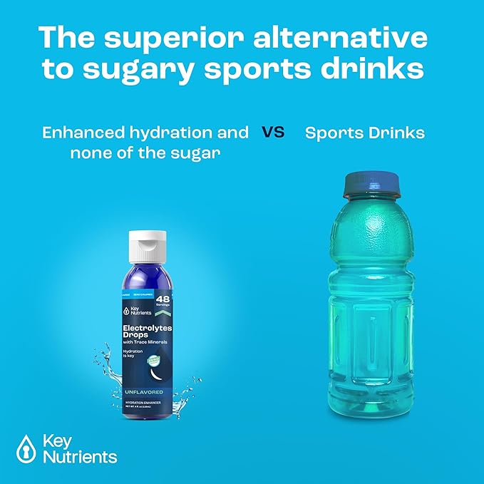 - Rapid Rehydration with Trace Minerals Liquid Electrolytes - Fatigued? Jet-lagged? Having muscle cramps? You need a balanced mix of electrolytes to keep your body energized and hydrated. Key Nutrients mineral drops hydrates faster and better than water alone. Suitable for all diets and lifestyles, everyone can enjoy our on-the-go daily electrolytes to power through whatever life throws.
