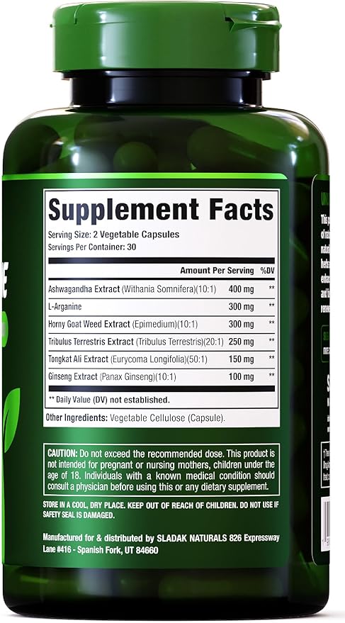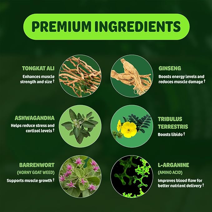 - Premium Ingredients - Our carefully crafted science-backed formula contains a blend of natural ingredients like Ashwagandha, L-Arginine, Tongkat Ali, Tribulus, Horny Goat Weed & Ginseng that have scientifically shown to support healthy testosterone levels and overall vitality.