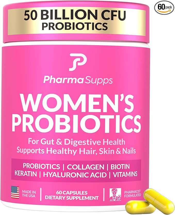 Advanced Women's Probiotics for Gut Health with Hair, Skin, & Nails Vitamins Support - 50 Billion CFU w/Collagen, Biotin & Keratin - Probiotic Supplement for Digestive Health & Bloating Relief.