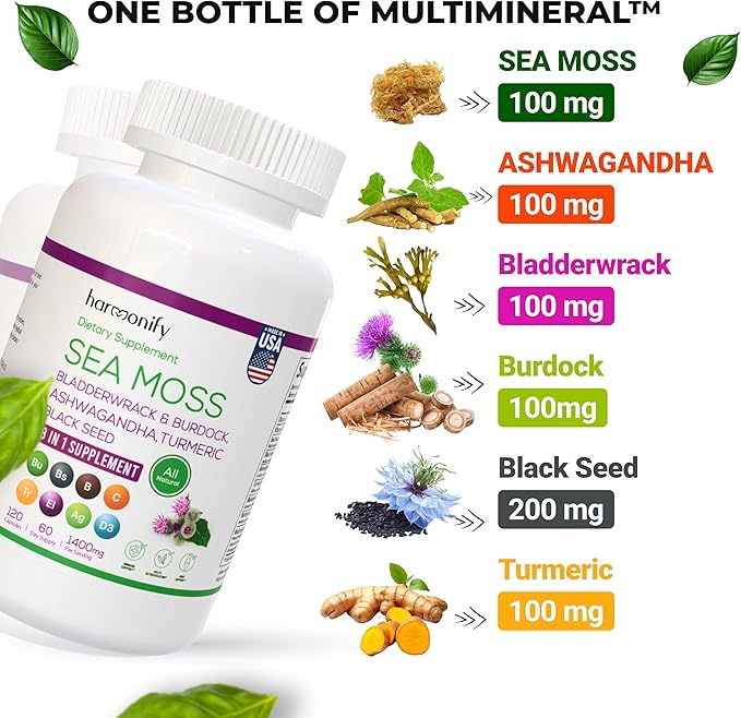 - HOLISTIC DETOXIFICATION: HARMONIFY combines mineral-rich sea moss with bladderwrack and burdock for detoxification, while also featuring immune-supporting ingredients like vitamin C, vitamin D3, elderberry, and ACV.