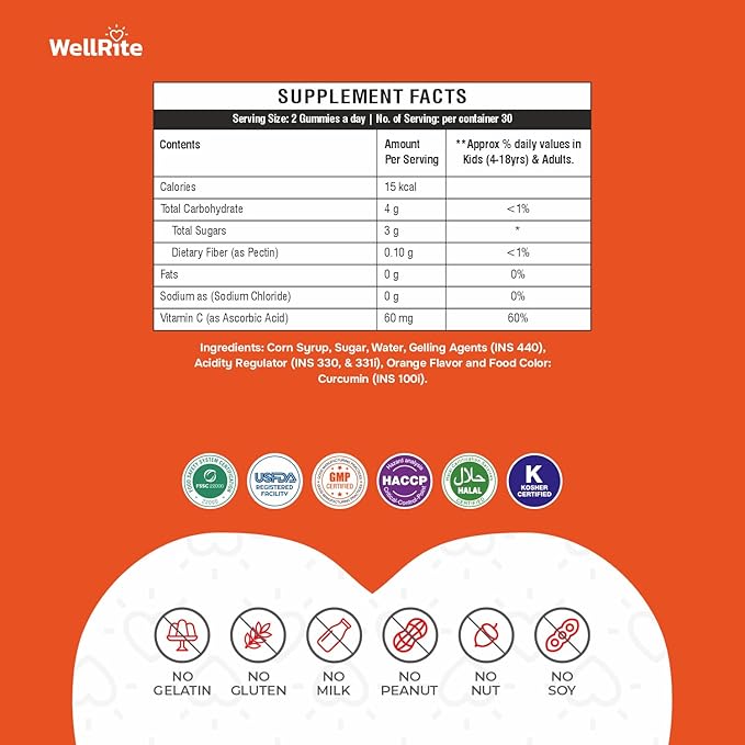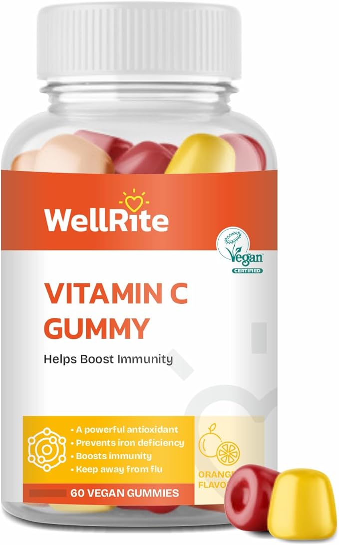 Vitamin C Gummy Vitamins which Helps Boost Immunity, 60 Count, Orange Flavored, Vegan, Gelatin Free, Gluten Free, Nut Free, Boosts Immunity, Antioxidant, Prevents Iron Deficiency