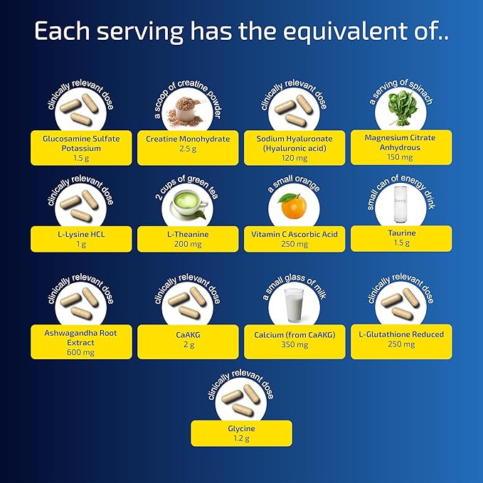 - HIGH QUALITY INGREDIENTS: CaAKG, Ashwagandha KSM66, Creatine Monohydrate, Glycine, L-Theanine, Glutathione reduced, Sodium Hyaluronate, Vitamin C (Ascorbic Acid), Lysine, Taurine, Calcium, and Magnesium Citrate, each sip of Longevity Mix delivers a potent dose of essential nutrients that your body craves.