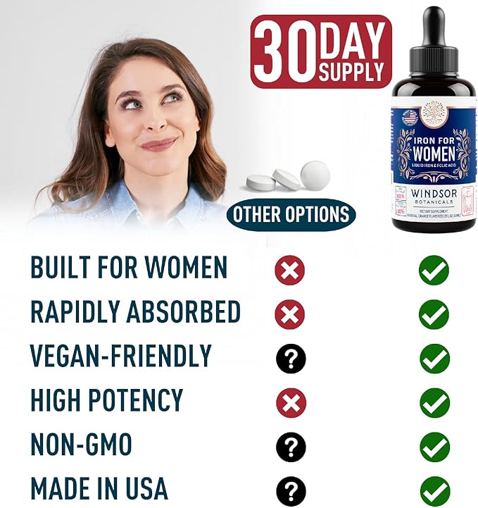 - STRONG AS IRON. Women are often susceptible to iron deficiency when pregnant and from blood loss during periods. This iron supplement liquid for women gives your full daily iron with vitamin C.