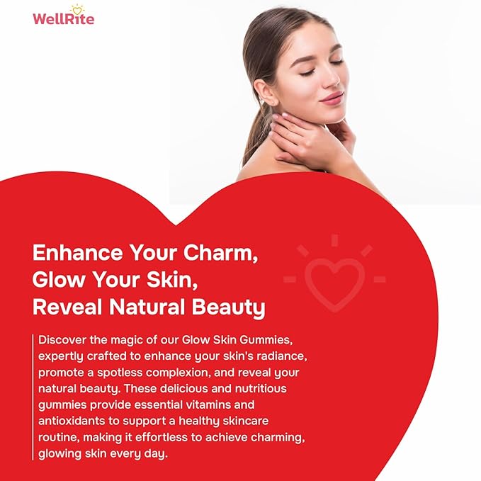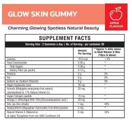 Glow Skin Gummy Vitamins, 60 Count, Apple Flavored, Vegan, Gelatin Free, Gluten Free, Nut Free, Glowing & Hydrated Skin, Reduced Eczema, Reduced Wrinkles