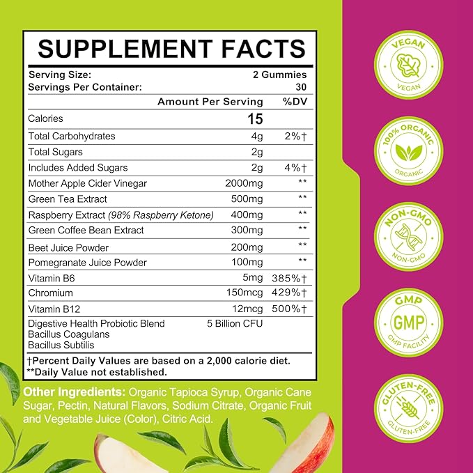 - APTAILORED FOR COMPREHENSIVE WELLNESS: Our apple cider vinegar kelly clarkson with mother are vegan, non-GMO, gluten-free, and gelatin-free. We stand by the purity and potency of acv keto gummies and test it at each stage of production, Ensures high-quality wellness support ple Cider Vinegar Gummies 2000mg with Green Tea - 120 Counts