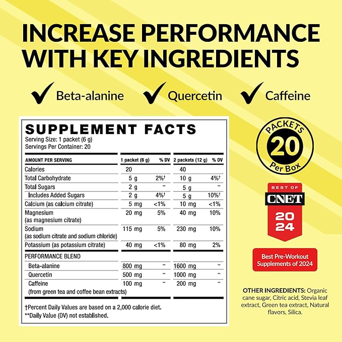 - DELAY FATIGUE & SHARPEN FOCUS - Energize contains beta-alanine and quercetin, key ingredients that supercharge your workouts. Beta-alanine helps delay fatigue during intense sessions, while quercetin helps enhance endurance, giving you the competitive edge needed to excel.*