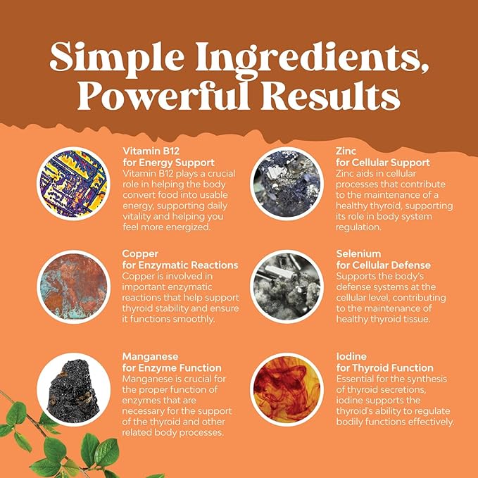 - Focus and Energy Support - One of the most common concerns for adults with compromised thyroids is feeling sluggish and lacking mental energy and focus so we added extra vitamin B12 and tyrosine