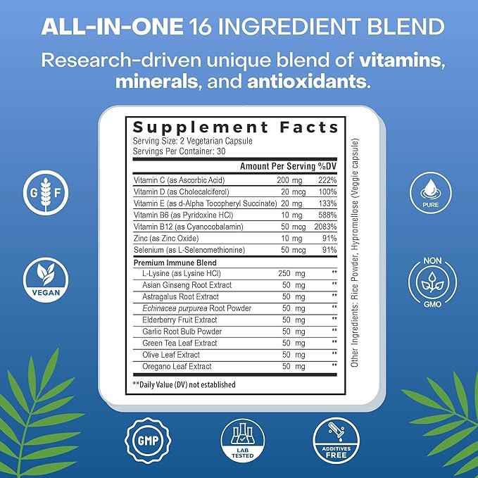 - 16 IN 1: Unique Immune support blend of natural herbs, vitamins, minerals, and antioxidants