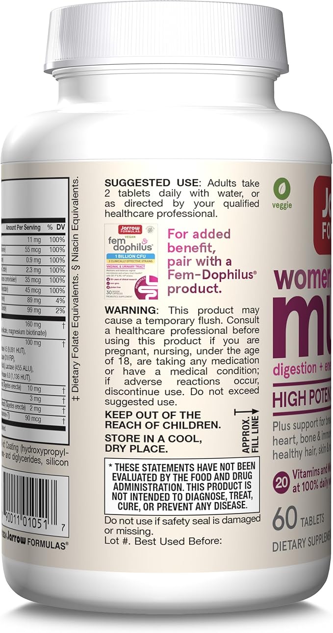 - EMPOWERS WOMEN: Jarrow Formulas Women's Multi+ supports breast health with the help of Vitamin A, D, Zinc and Lutein(1); pair with a Fem-Dophilus product for added benefit