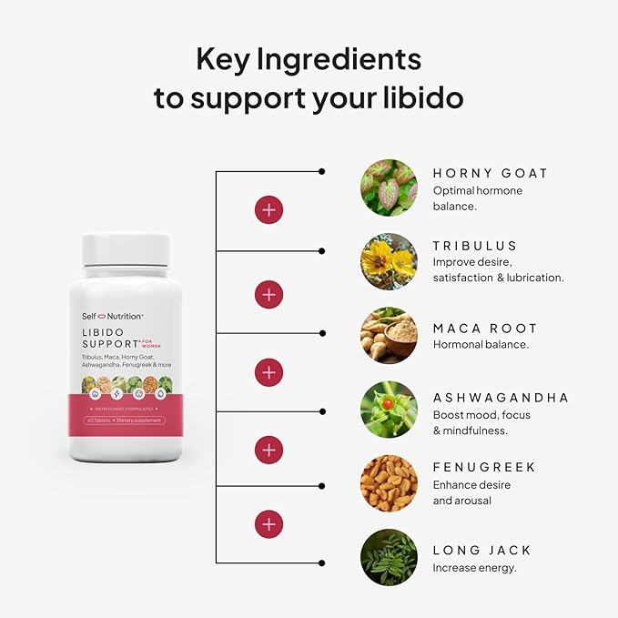 - BOOST YOUR CONFIDENCE: Tackle low libido head-on with our potent blend of herbs and nutrients. This formula includes Horny Goat Weed, a natural aphrodisiac that boosts vitality, Maca for hormonal balance, Fenugreek to improve blood circulation, Ashwagandha for overall vitality, and Tribulus Terrestris for lubrication and satisfaction.