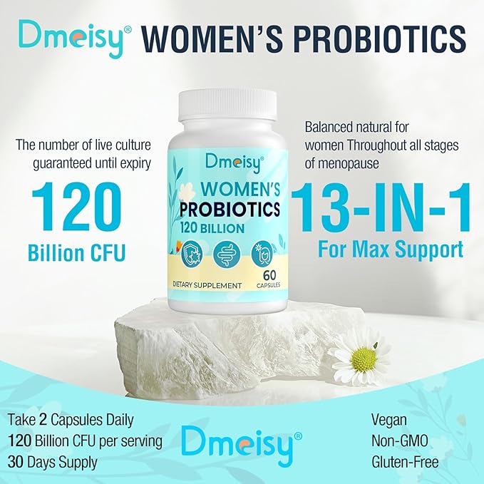 - Best Choice Of Daily Probiotic: Dmeisy 120 billion CFUs menopause supplements for women is designed with delayed-release technology to allow the capsules to survive stomach acid and reach the gut. Come in slow-release capsules to ensure the probiotics are active and effective. Shelf-stable, Non-refrigerated & Vegan. 60 capsules for 30-day supply. Also easy to swallow and carry