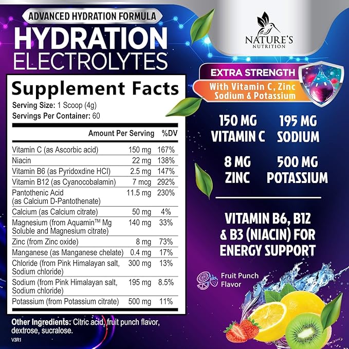 - CONVENIENT ELECTROLYTE DRINK MIX: With 60 servings of this hydration electrolyte powder, it’s easy to stay hydrated and replenish your electrolytes whether at home, the gym, or on the go; Perfect for anyone seeking reliable electrolights support
