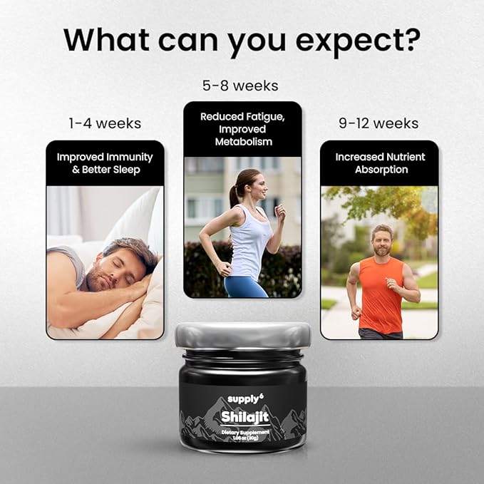 - OVERALL WELLNESS BENEFITS: Supply6 Shilajit is an ultimate source of natural trace minerals and Fulvic Acid, renowned for combating fatigue, aiding recovery, supporting heart health, boosting endurance, and enhancing focus. Fulvic Acid acts as a powerful antioxidant, promoting cell regeneration and metabolism.