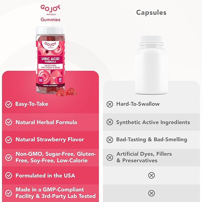 - Naturally-Flavored Sugar-Free Gummies – Make your uric acid cleanse an enjoyable experience that you look forward to with our sugar-free gummies, naturally sweetened with monk fruit extract & bursting with a delicious natural strawberry flavor