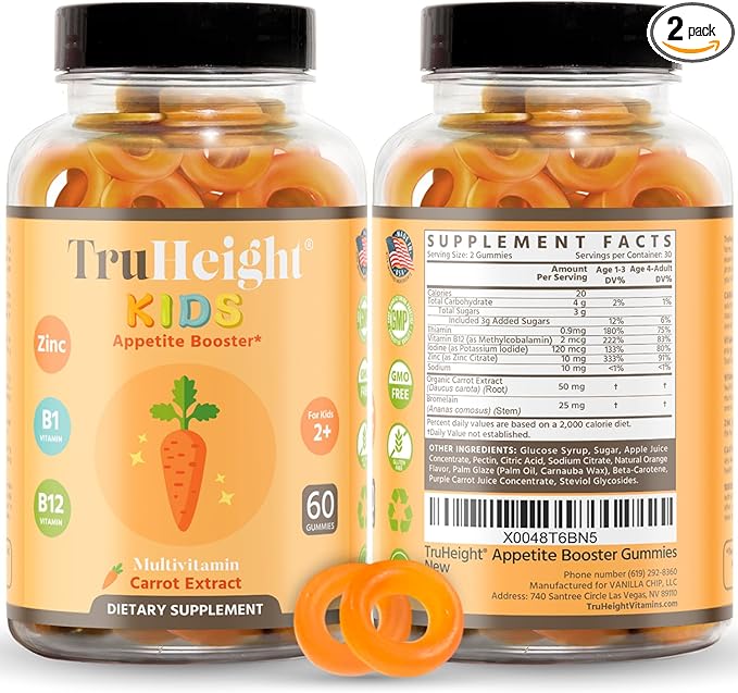 - Boost Appetite Naturally: TruHeight Kids Appetite Booster Gummies are specially designed for toddlers, kids & teens. They are formulated with organic carrot extract, Vitamins B1, B12, and Zinc to naturally increase your child’s appetite, ensuring they get the essential nutrients they need for healthy growth.*