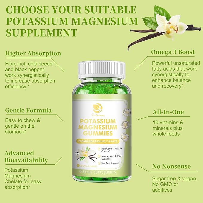- Easy To Take & Delicious: Swallowing capsules and tablets is a chore; our sugar-free potassium magnesium gummies offer an easy and delicious way to meet your daily needs; with no aftertaste, pleasant to chew, easier to absorb, gentle on the stomach