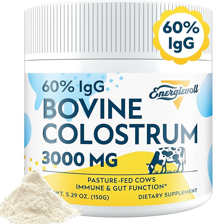 Bovine Colostrum Supplement Powder - 60% IgG 3000 mg for Gut, Hair Growth, Beauty, and Immune, Easy to Mix, Unflavored (50 Servings)