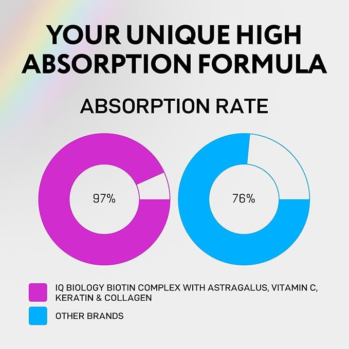 - Commitment to Your Satisfaction at IQ Biology – Here, At IQ Biology, your satisfaction is our priority. Our 24/7 customer support ensures assistance whenever needed. Our collagen biotin hair, skin and nails vitamins are made with safe, carefully selected ingredients, free from unnecessary additives. We aim to deliver visible results for your hair, skin, and nails while exceeding your expectations.