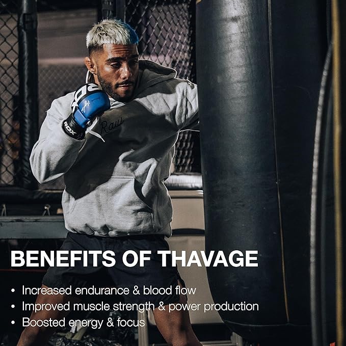 - The New Standard: Whether you’re hitting the gym, going for a run, or crushing a home workout, Thavage Pre-Workout has everything you need to take your fitness to the next level. Made in the USA. No artificial ingredients, no GMOs, no BS.