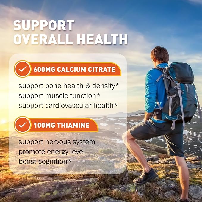 - Level Up Your Health: As essential minerals, our natural B1 vitamin gummies are formulated with high-quality 600mg calcium ( as calcium citrate, calcium carbonate) and thiamine 100mg, which work together smoothly and play a huge role in supporting heart health and enhance cognitive function.