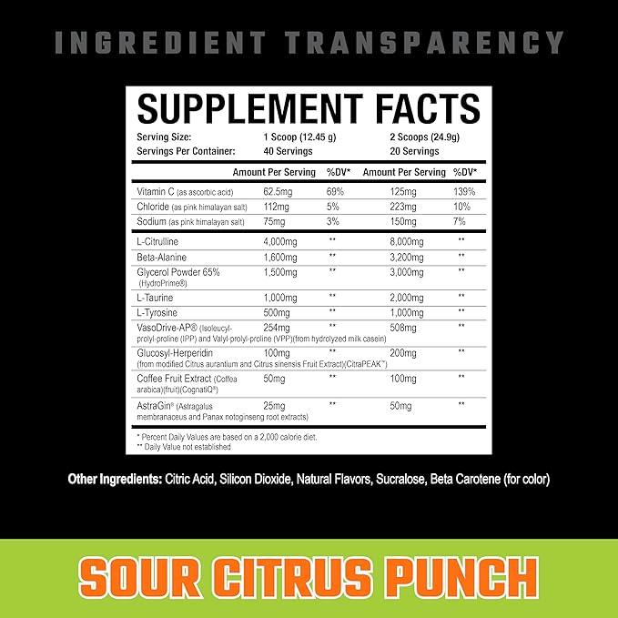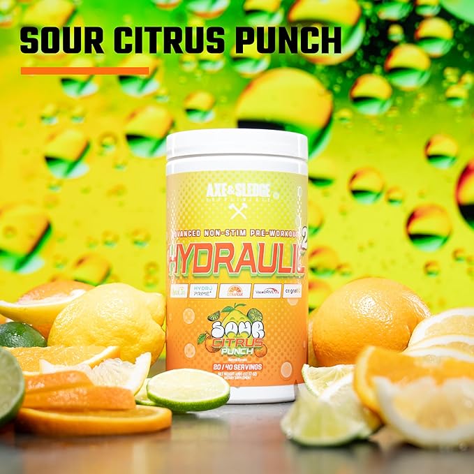 Axe & Sledge Supplements Hydraulic Stimulant-Free Pump Pre-Workout Powder, 40 Servings, (Pack of 1) (Sour Citrus Punch)
