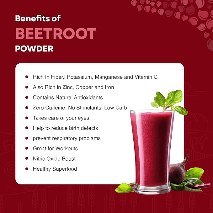 - ANTI OXIDANT POWERHOUSE: Our organic beetroot powder is packed with a wide range of vitamins, minerals, and antioxidants, including vitamin C, and betalains, to support overall health and well-being. With its ample dietary fiber content,this organic beets powder helps support healthy digestion and regular bowel movements.