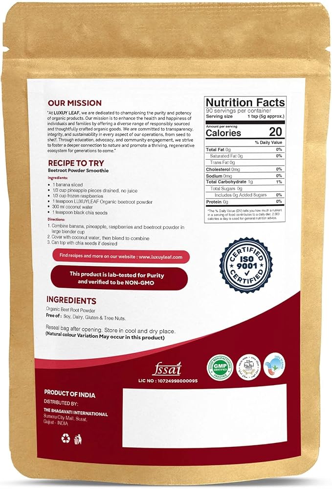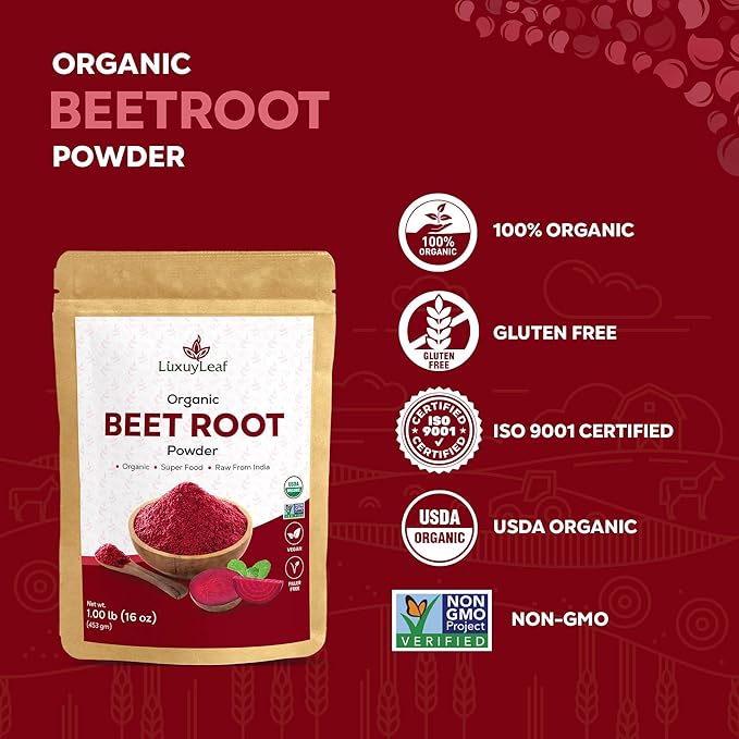 - NATURAL DETOXIFIER: LuxuyLeaf organic beet root powder is an excellent approach to receive essential nutrients in a pure, natural, and handy form that support the liver's detoxification processes, assisting the body in eliminating toxins which helps to improve overall health.