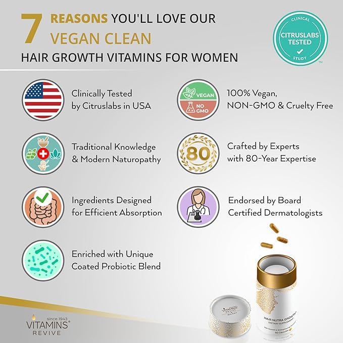 VITAMINS REVIVE Hair Supplement Hair Growth Vitamins for Women - USA Clinically Tested - Hair Loss Products for Thinning & Thickening - Female Hair Regrowth Treatment (1 Month Supply)