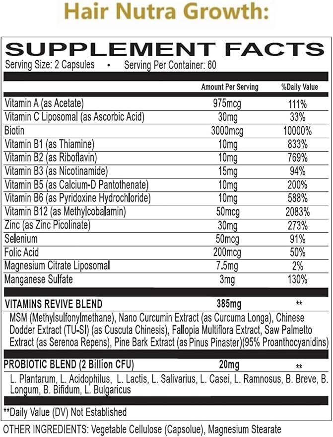 - EFFECTIVE NUTRIENT ENHANCED ABSORPTION - Probiotic Blend, Nano sized & Liposomal Holistic Hairgrowth Ingredients, MSM, Zinc, Saw Palmetto, Biotin for Hair Health, Skin Beauty & Natural Hair Balance