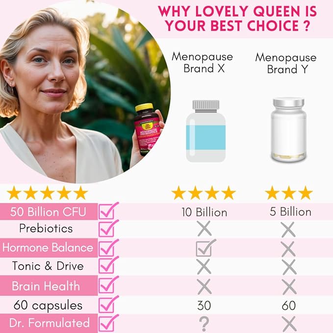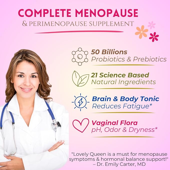 - 【 Hormone-Free MENOPAUSE SYMPTOMS RELIEF 】Lovely Queen supports women during menopause & peri-menopause stage of life by promoting hormonal balance and helping to ease symptoms such as hot flashes, mood swings, night sweats, fatigue. They also help balance pH levels, improve vaginal health, odor control & female drive. Each purchase comes with our free 'Menopause Pro Tips' eBook, link on the label.
