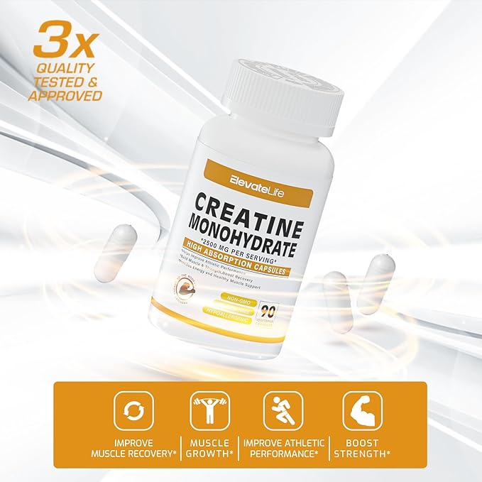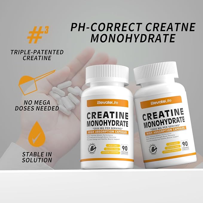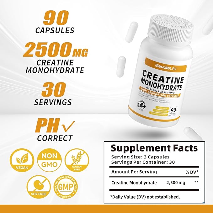 - 180 Capsules (60 Servings) of Creatine Monohydrate Per Bottle