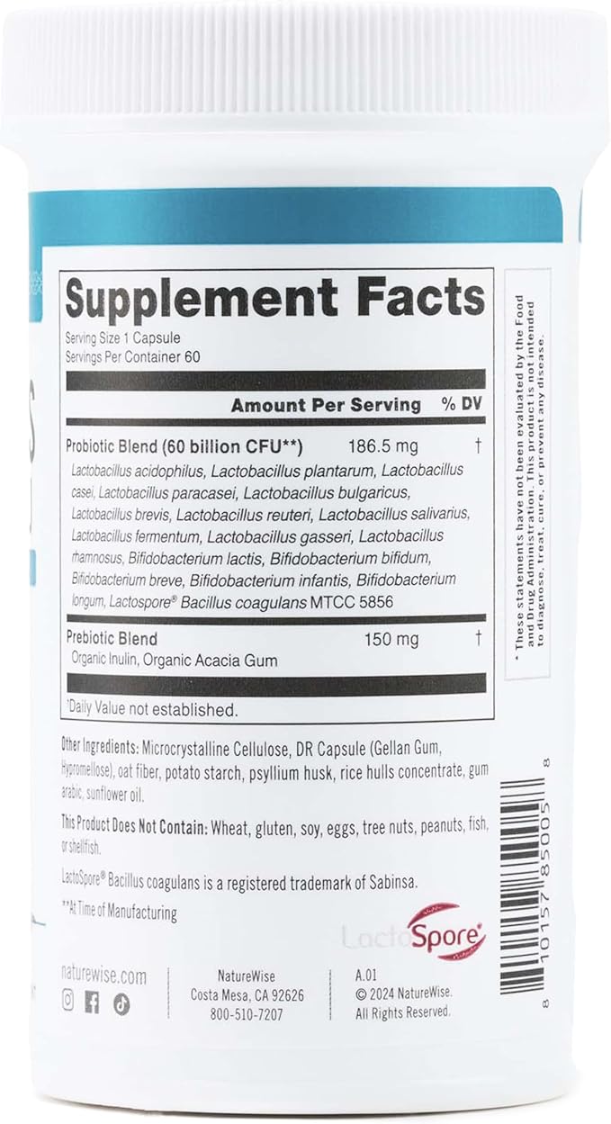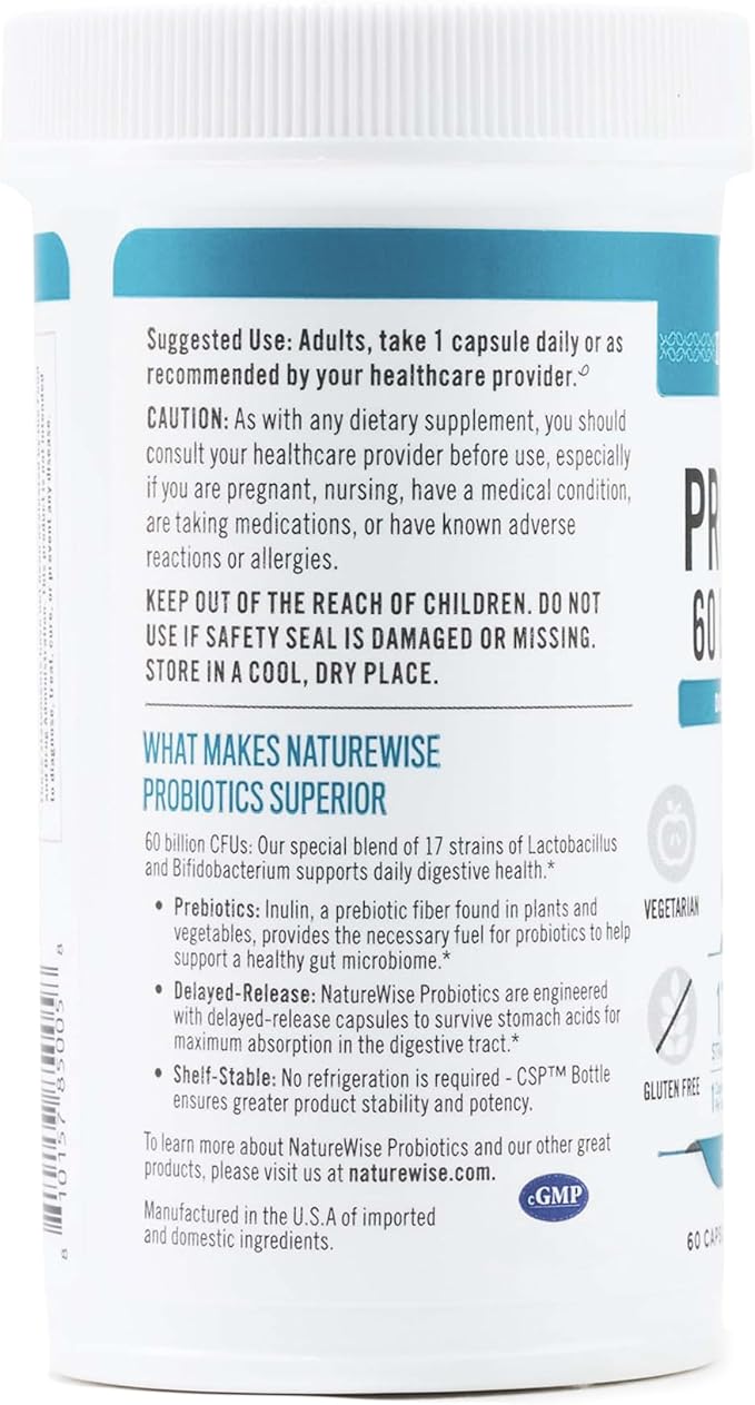 - PREMIUM INGREDIENTS: NatureWise 60 Billion CFU Probiotics are manufactured in the USA with high-quality ingredients from around the world in a cGMP-certified facility with third-party quality control audits.