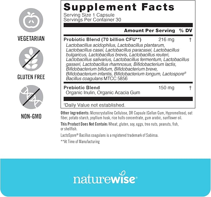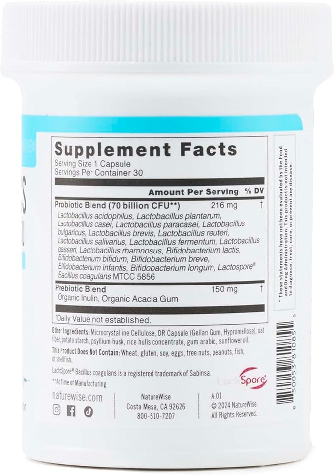 - PREMIUM INGREDIENTS: NatureWise 70 Billion CFU Probiotics are manufactured in the USA with high-quality ingredients from around the world in a cGMP-certified facility with third-party quality control audits.