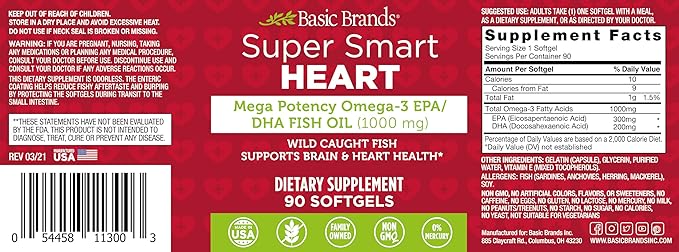 - Embrace a Smarter Heart: SUPER SMART HEART Mega Potency Omega-3 is your ticket to a heart that's both healthier and smarter. Packed with the finest Omega-3 EPA/DHA sourced from wild-caught fish, our softgels offer you a comprehensive solution for heart health and more. Elevate your well-being with the superior power of SUPER SMART HEART Mega Potency Omega-3.